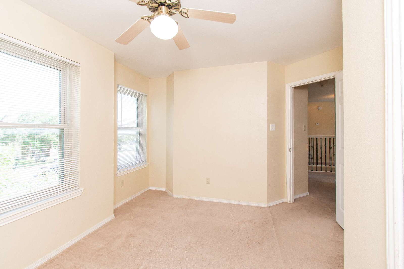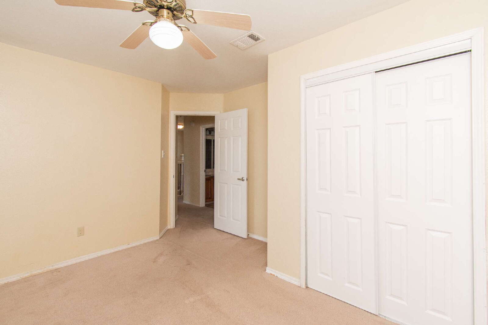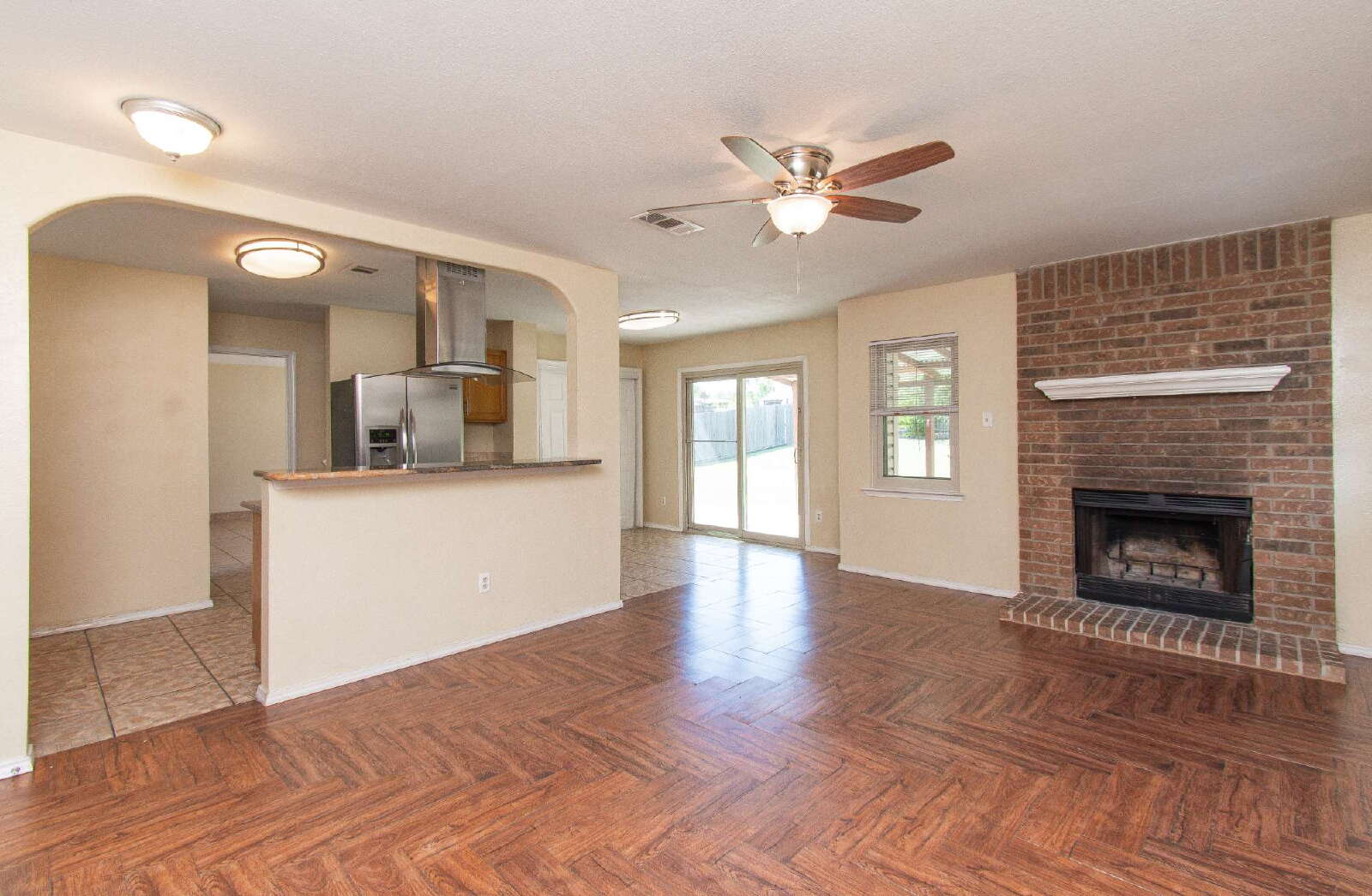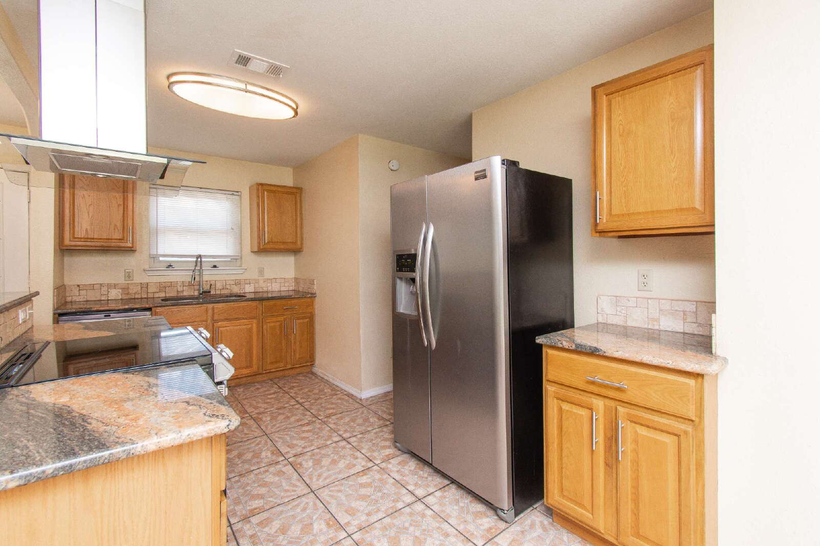 This 2-story home features a cozy fireplace in the living room and a well-designed kitchen with a breakfast bar, custom cabinets, granite countertops, a pantry, and essential appliances. A convenient powder room is located on the main level. The rooms are comfortably sized, while the primary bathroom offers a shower/tub combo and a double vanity. Enjoy outdoor living in the privately fenced backyard, perfect for relaxation or gatherings.