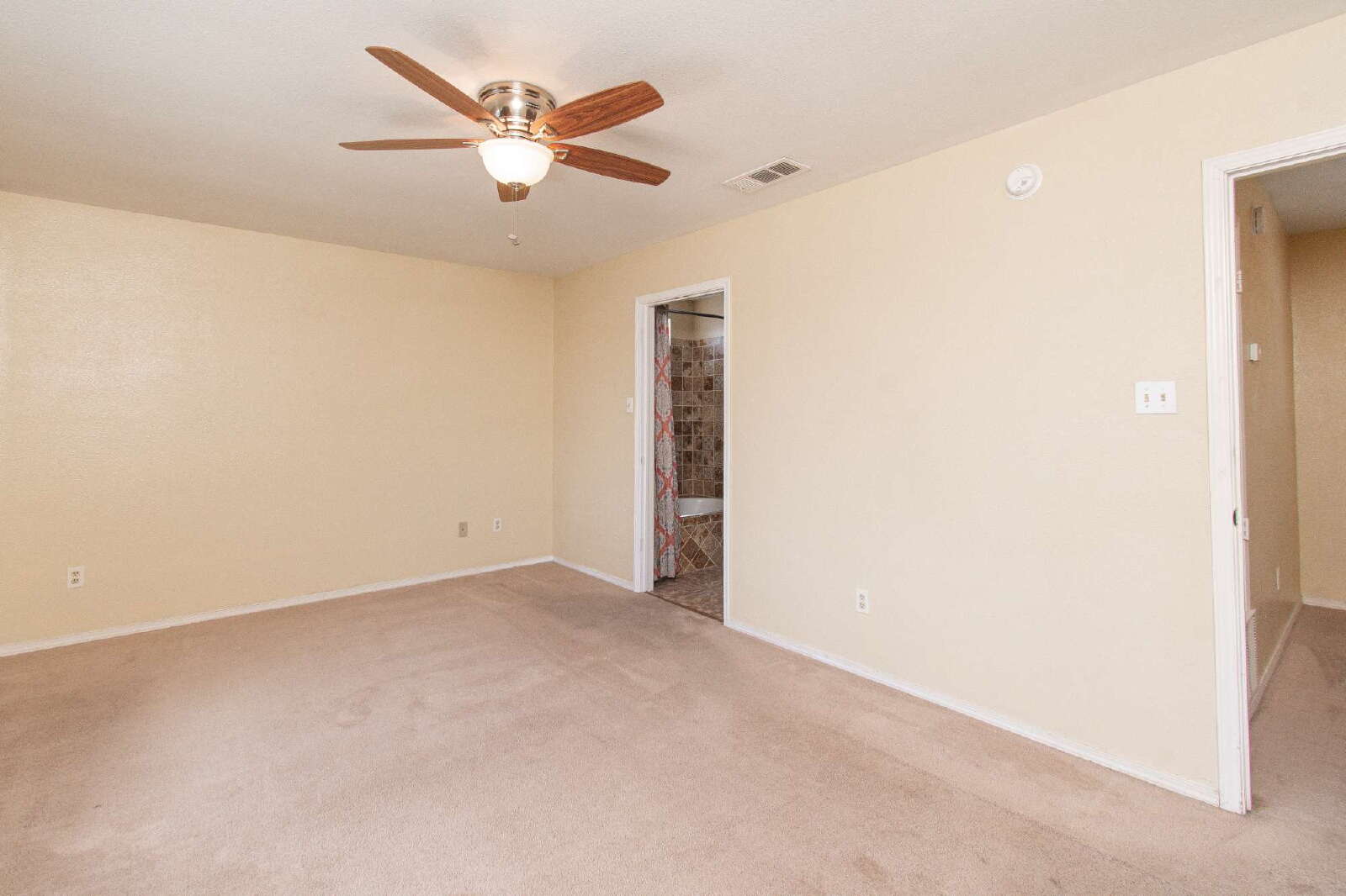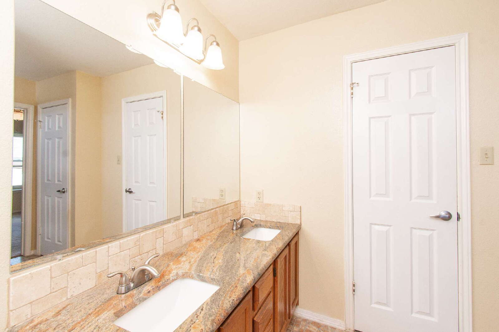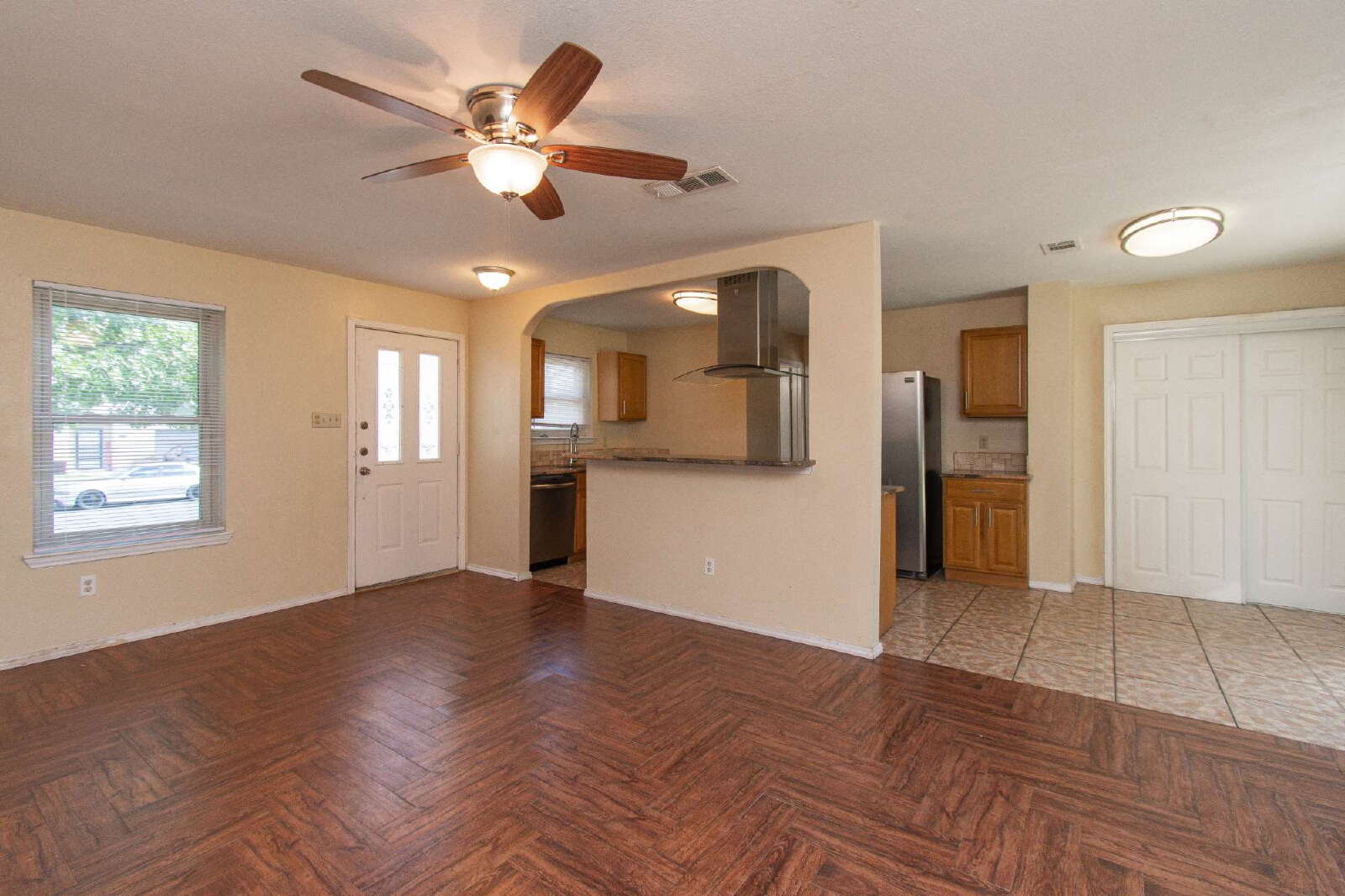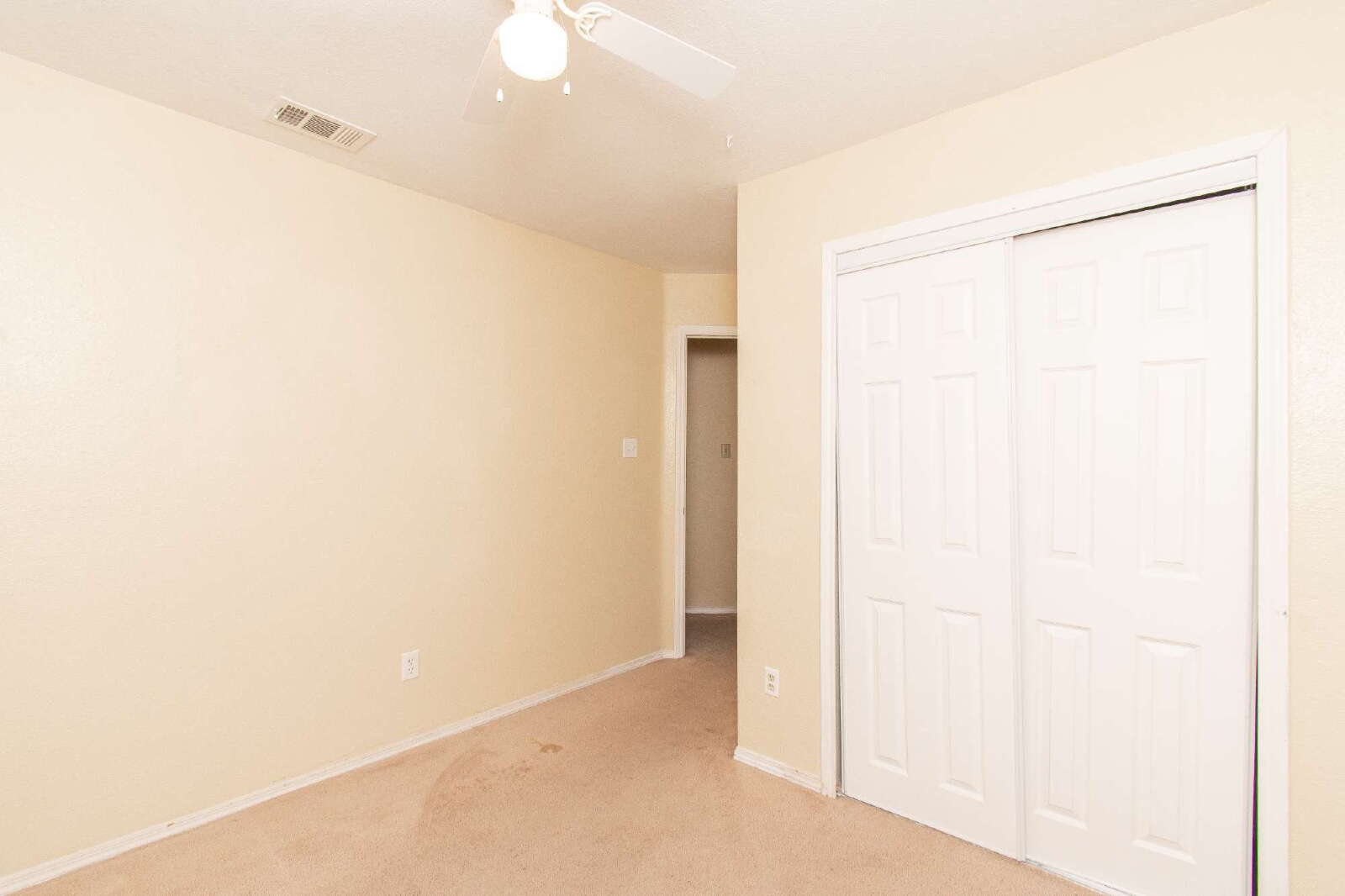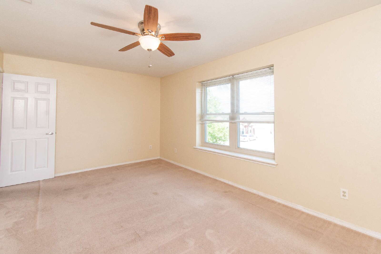 This 2-story home features a cozy fireplace in the living room and a well-designed kitchen with a breakfast bar, custom cabinets, granite countertops, a pantry, and essential appliances. A convenient powder room is located on the main level. The rooms are comfortably sized, while the primary bathroom offers a shower/tub combo and a double vanity. Enjoy outdoor living in the privately fenced backyard, perfect for relaxation or gatherings.