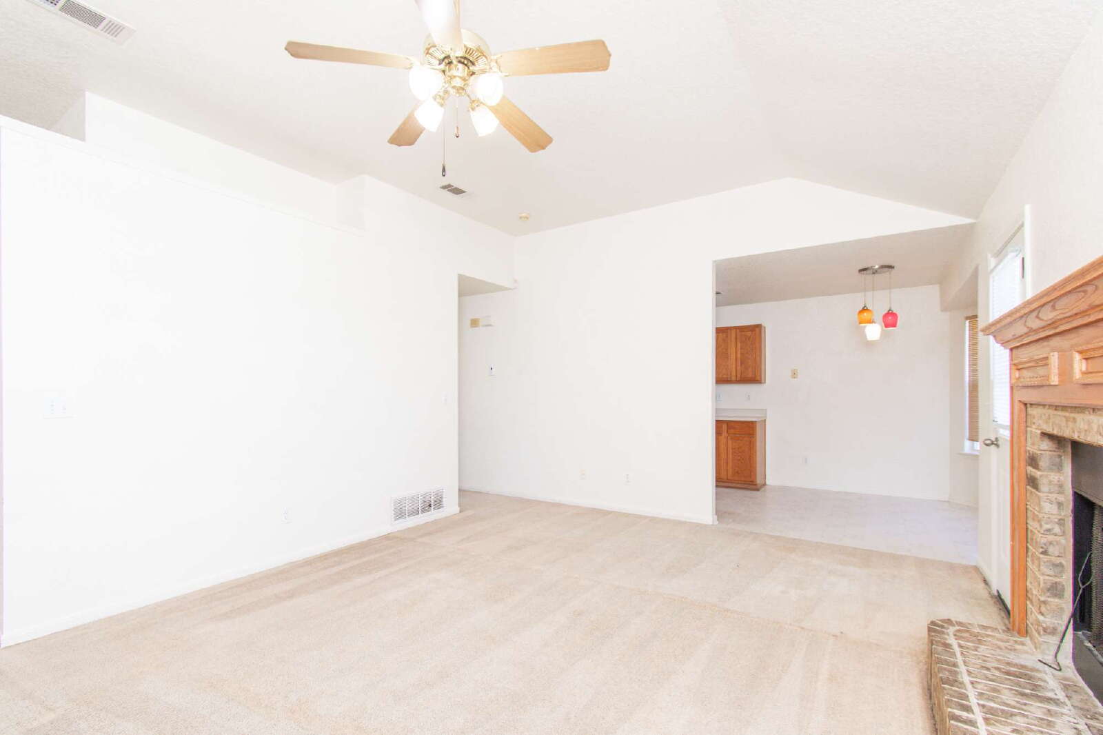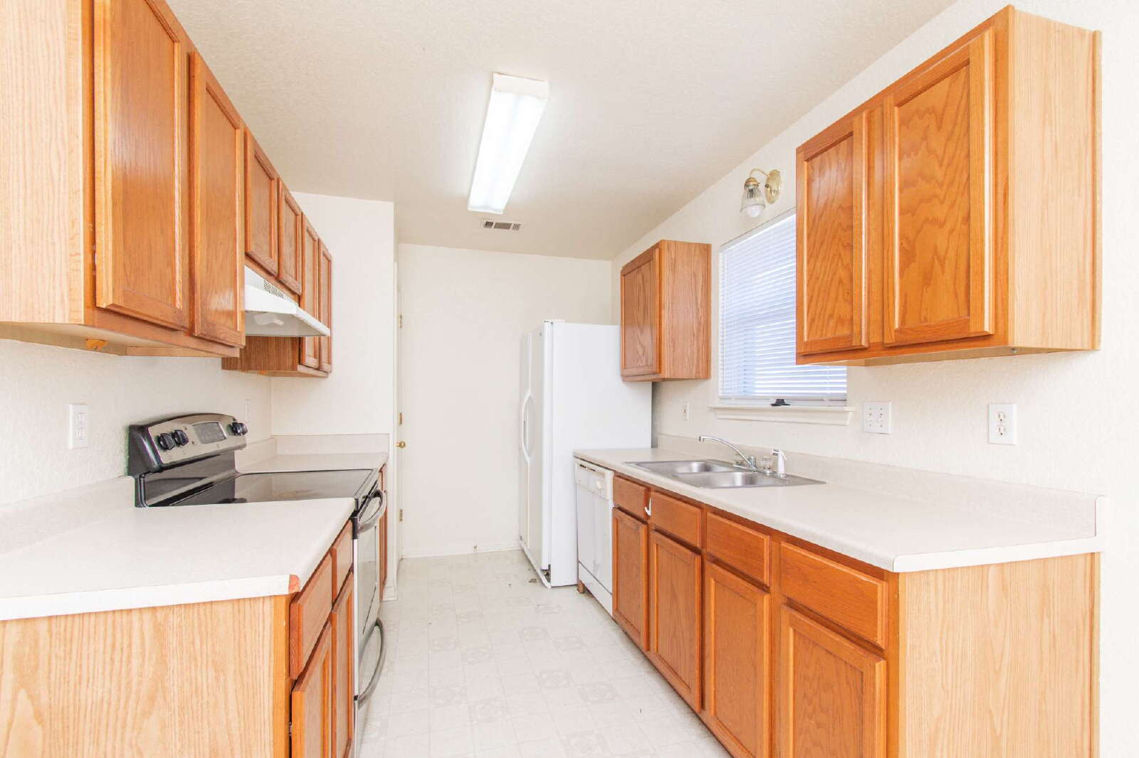 This charming home offers a warm and inviting atmosphere with a cozy fireplace in the living room. The kitchen is well-equipped with custom cabinets, a pantry, and essential appliances—perfect for everyday living. All rooms are decent in size, providing comfortable space throughout. The primary bedroom features a shower/tub combo and a double vanity for added convenience. Enjoy outdoor living in the privately fenced backyard, and take advantage of the attached garage located in the front of the home.