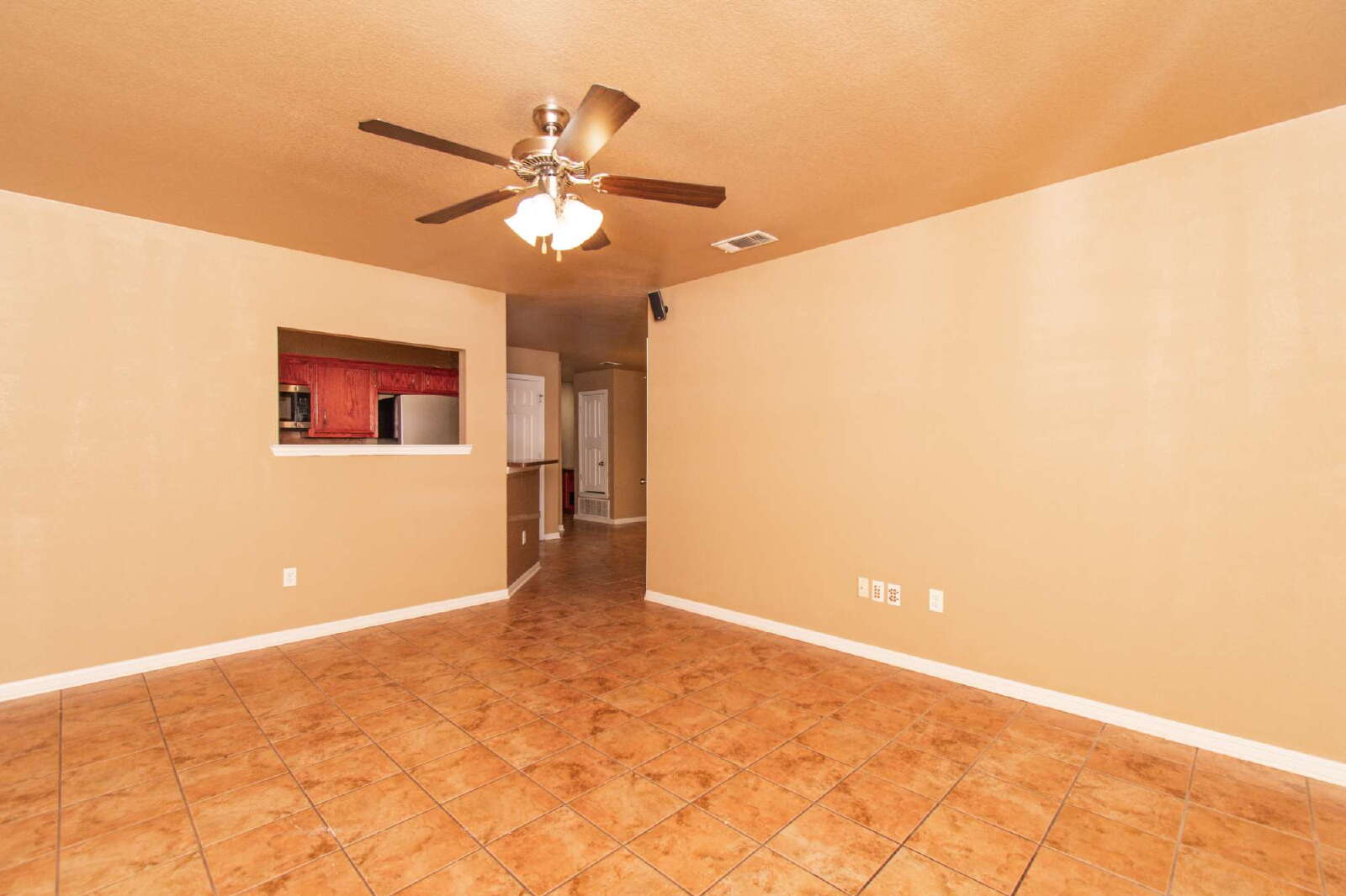 This adorable duplex features ceiling fans throughout for added comfort. The kitchen is equipped with custom cabinets, a pantry, laminate countertops, and essential appliances. A laundry room with washer/dryer hookups adds convenience, while the rooms are comfortably sized. The primary bathroom offers a shower/tub combo and a double vanity. The backyard is privately fenced, and the attached garage at the front provides easy access and functionality.