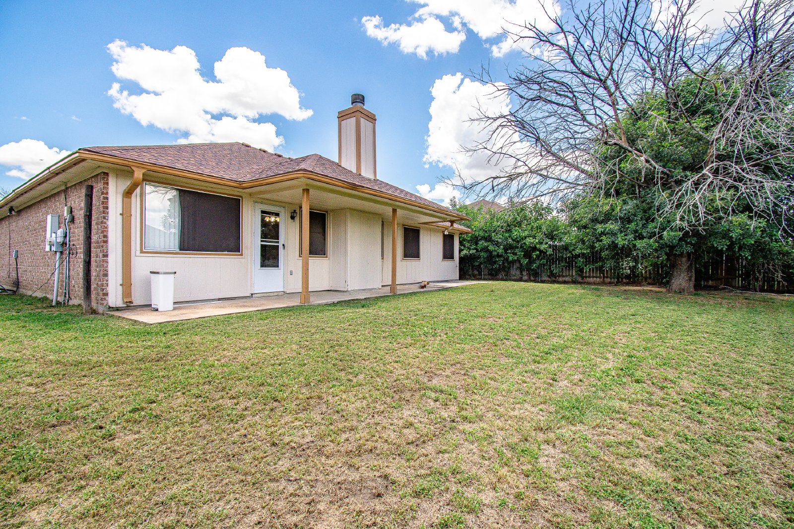 This charming home features a cozy living room with a fireplace and ceiling fans throughout. The kitchen is equipped with custom cabinets, a pantry, and appliances. The rooms are decently sized, and the primary bedroom offers closets, a shower/tub combo, and a double vanity. The privately fenced backyard and attached garage add to the home's appeal.