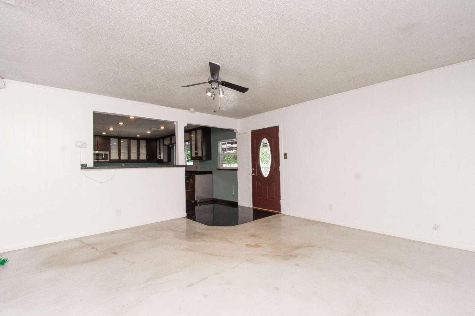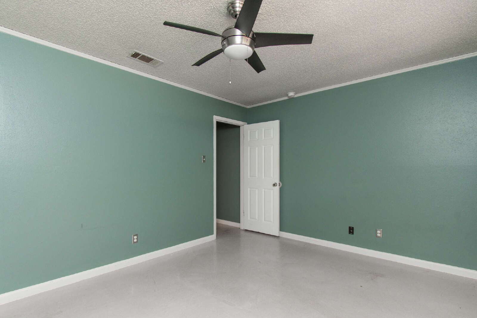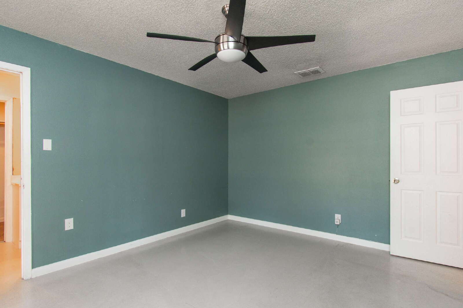 This home showcases concrete-stained floors, crown molding, and ceiling fans throughout, adding both style and comfort. The kitchen is equipped with custom cabinets, granite countertops, and stainless steel appliances. A laundry room provides convenience, and the rooms are comfortably sized. The primary bedroom features a shower-only layout with a double vanity. Enjoy outdoor living in the privately fenced backyard.