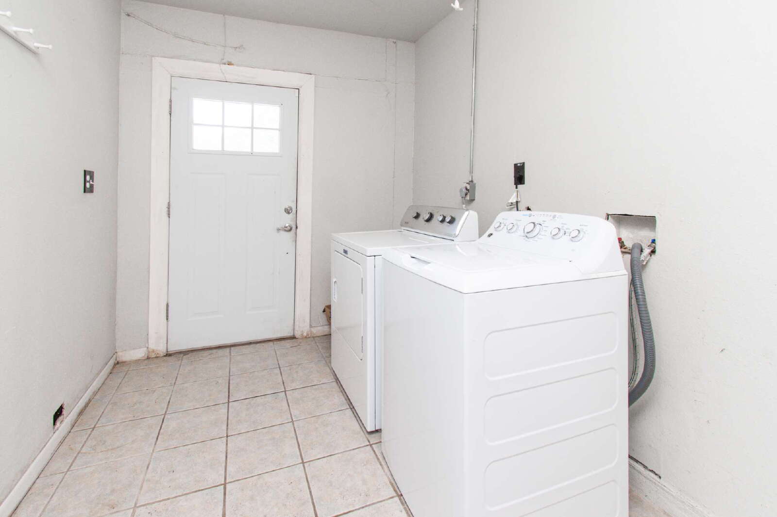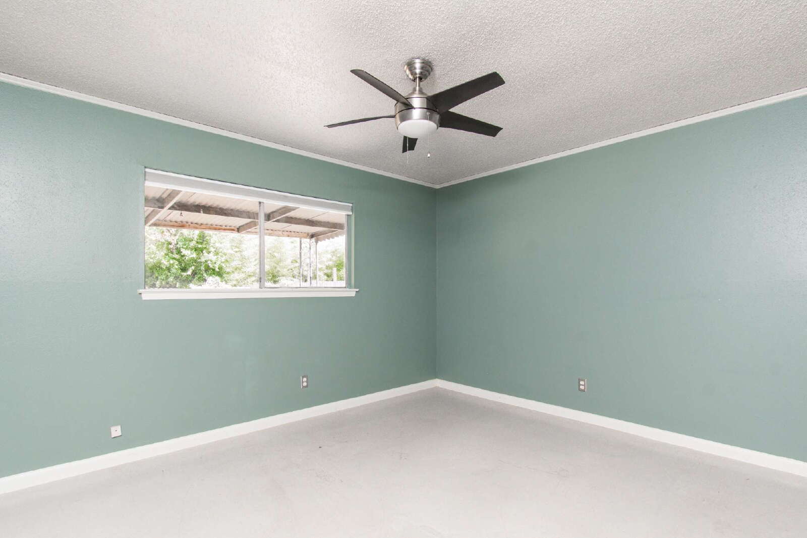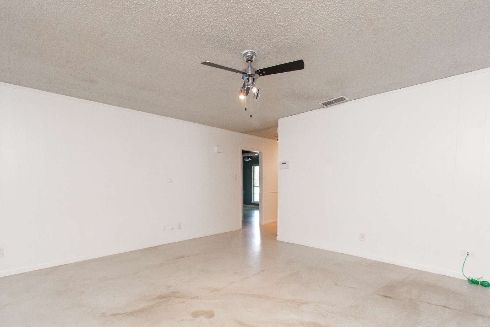 This home showcases concrete-stained floors, crown molding, and ceiling fans throughout, adding both style and comfort. The kitchen is equipped with custom cabinets, granite countertops, and stainless steel appliances. A laundry room provides convenience, and the rooms are comfortably sized. The primary bedroom features a shower-only layout with a double vanity. Enjoy outdoor living in the privately fenced backyard.