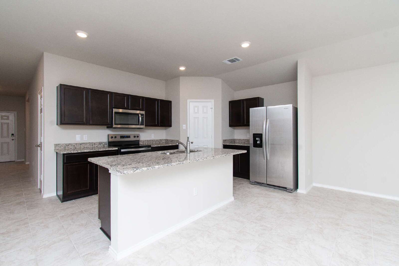 Discover this amazing home featuring recessed lighting throughout, creating a bright and modern ambiance. The kitchen is beautifully designed with custom cabinets, granite countertops, a pantry, and stainless steel appliances—perfect for everyday cooking and entertaining. A dedicated laundry room with washer/dryer hookups adds convenience. The rooms are decent in size, offering comfortable living spaces, while the primary bathroom boasts a shower-only setup, a vanity, and a spacious walk-in closet. Enjoy privacy and outdoor living in the fully fenced backyard. An attached garage at the front provides added convenience and curb appeal.