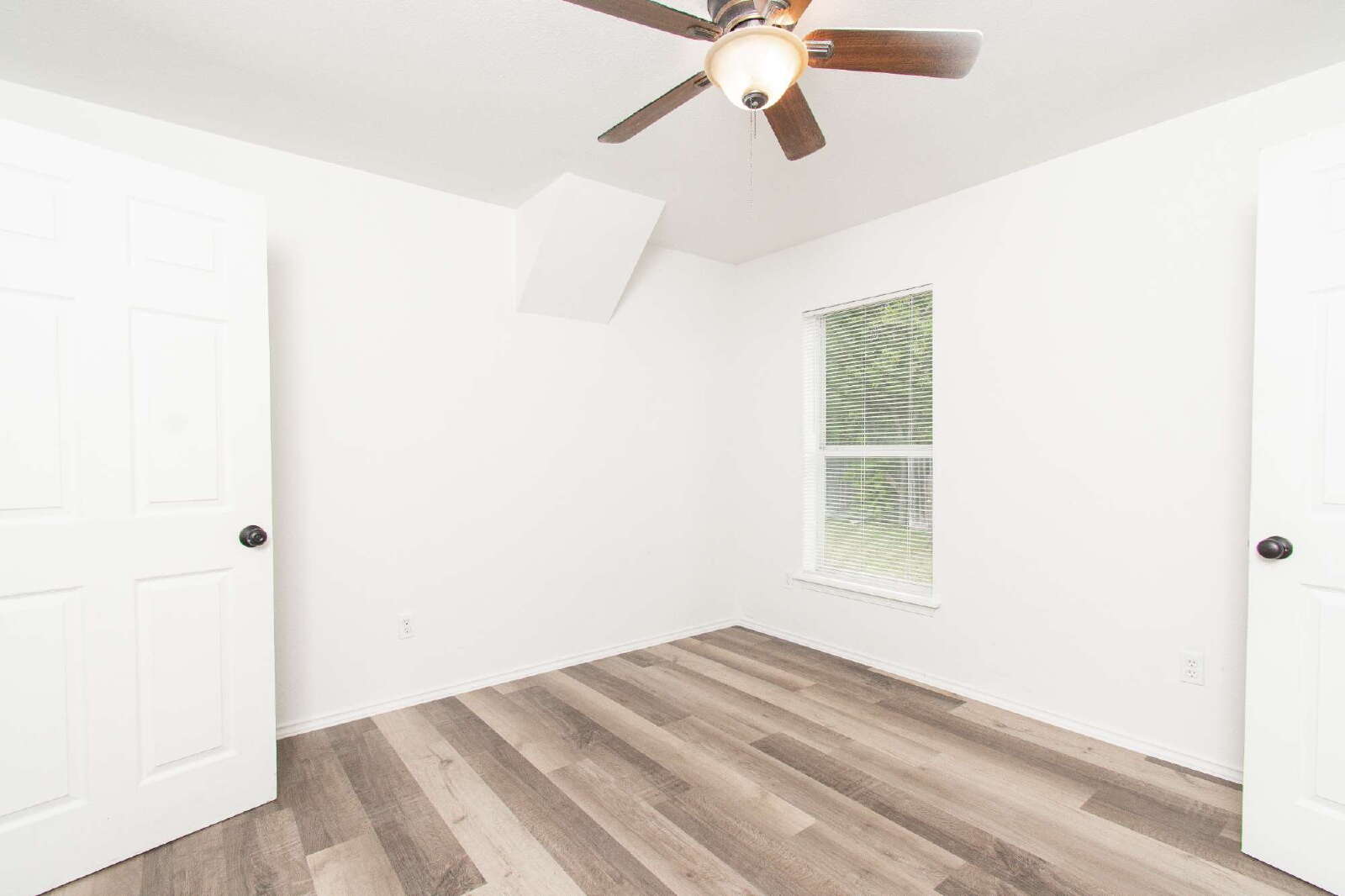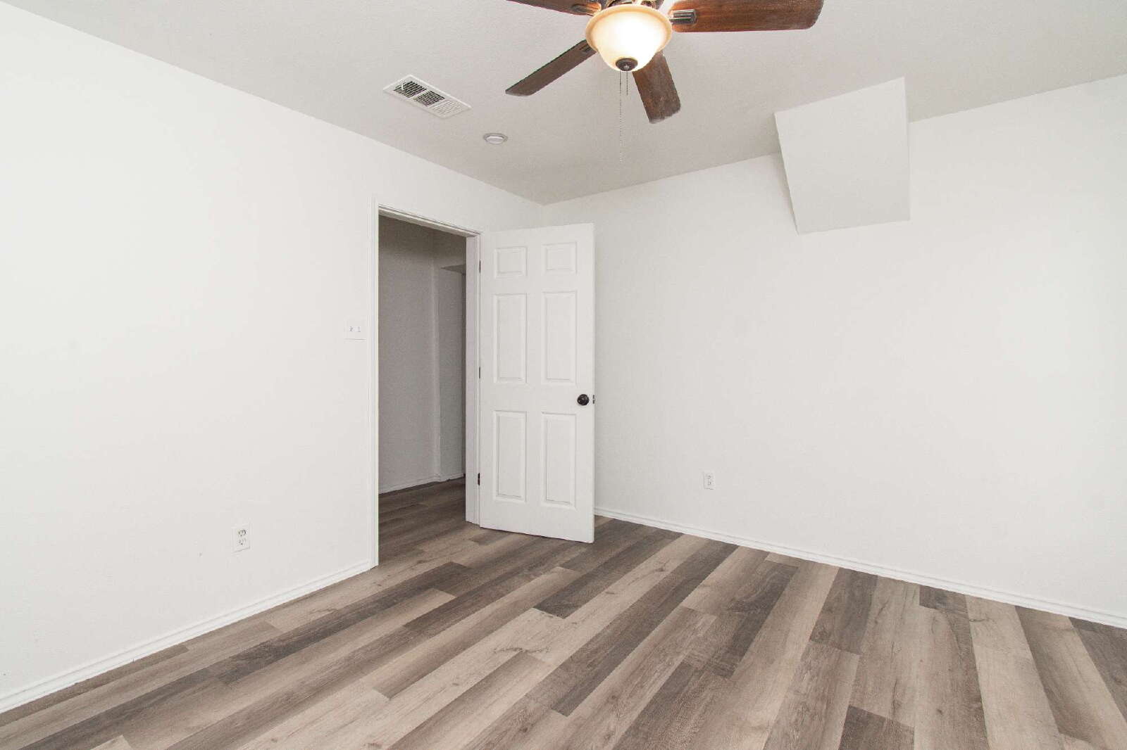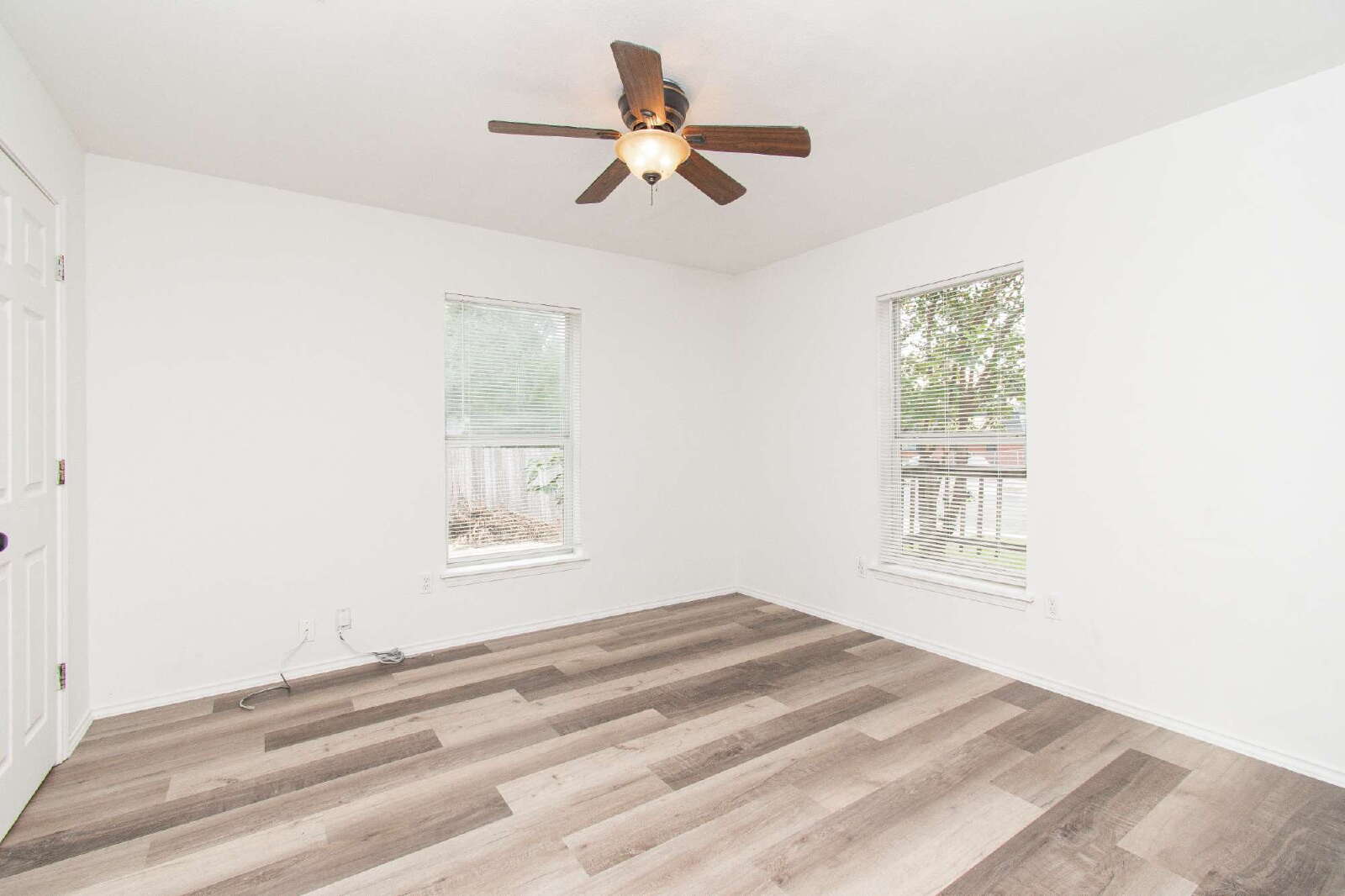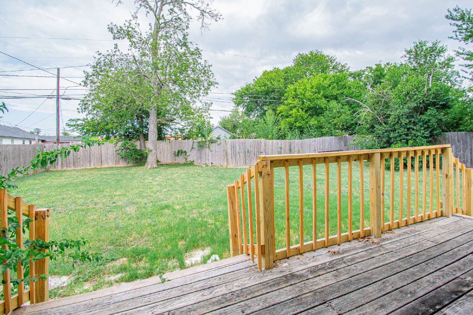 This home features laminate flooring and ceiling fans throughout, creating comfort and style in every room. The kitchen includes a breakfast bar, custom cabinets, and essential appliances. The rooms are comfortably sized, while the primary bedroom offers a shower/tub combo with a vanity. The privately fenced backyard provides space for outdoor enjoyment.