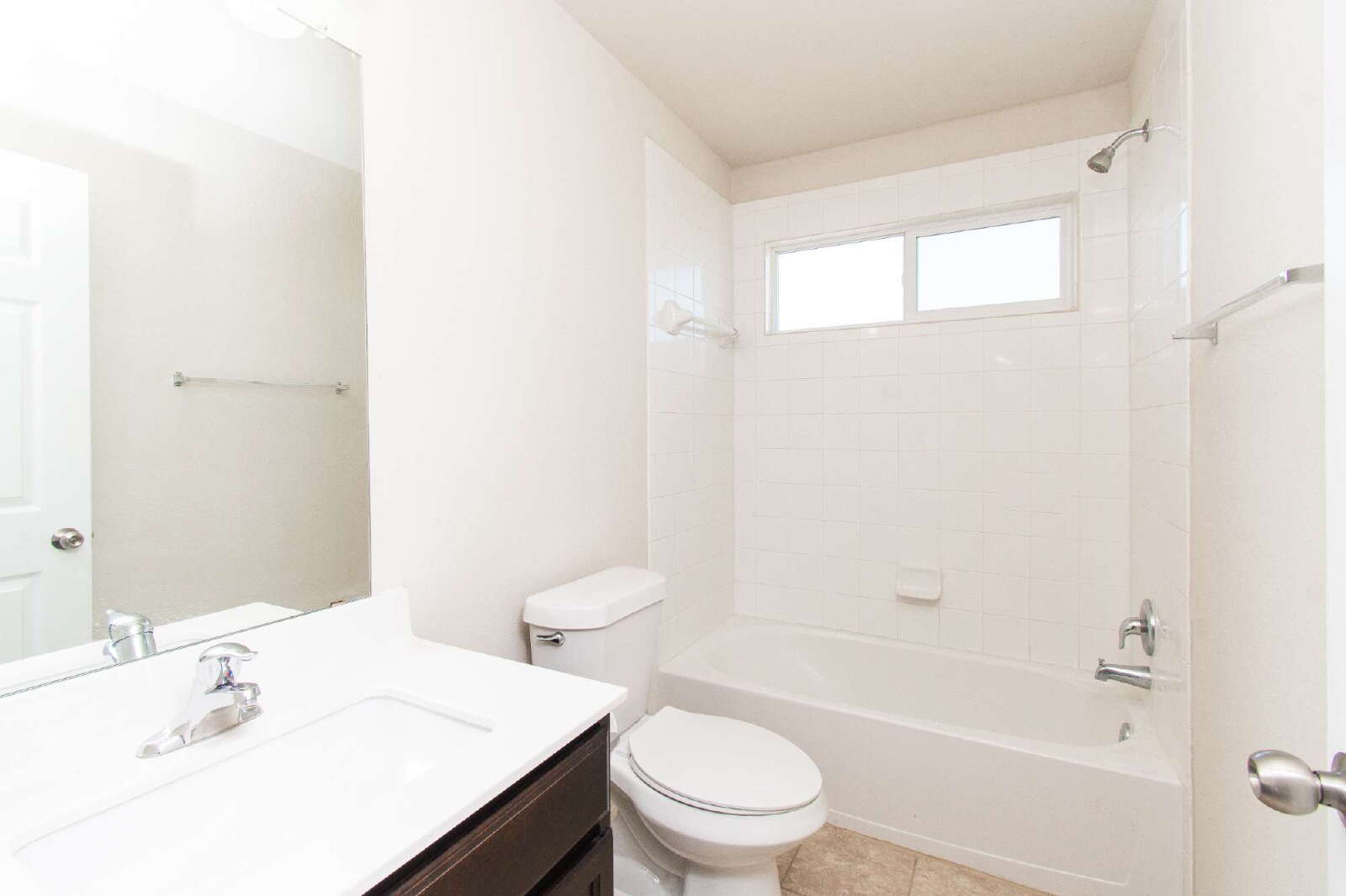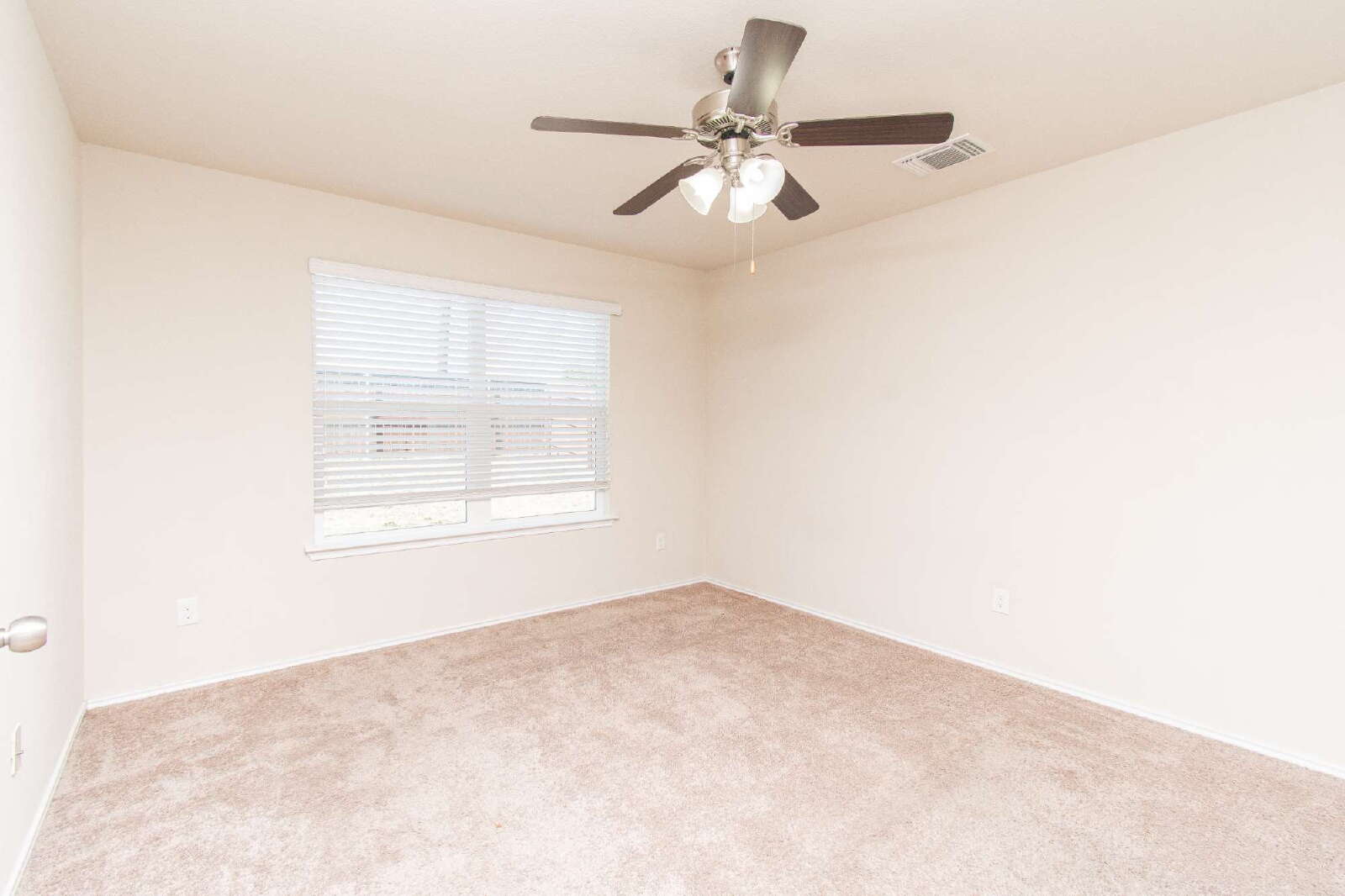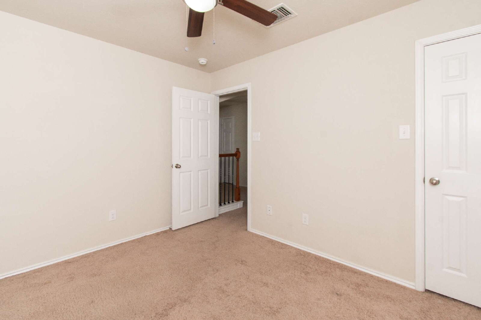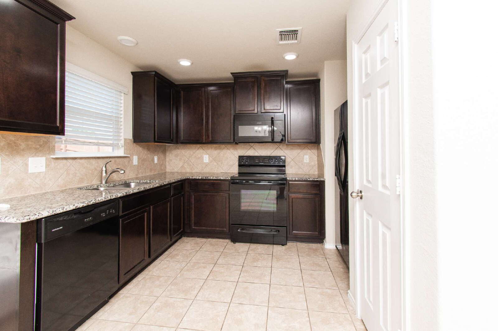 This stunning two-story home features a modern kitchen with custom cabinets, granite countertops, recessed lighting, a pantry, and essential appliances. A convenient laundry room with washer/dryer hookups adds functionality. The rooms are decent in size, offering comfort and flexibility for your needs. The primary bedroom includes a shower-only setup and a double vanity for added convenience. Enjoy the privately fenced backyard, perfect for outdoor gatherings, and an attached garage in the front for easy access and parking.