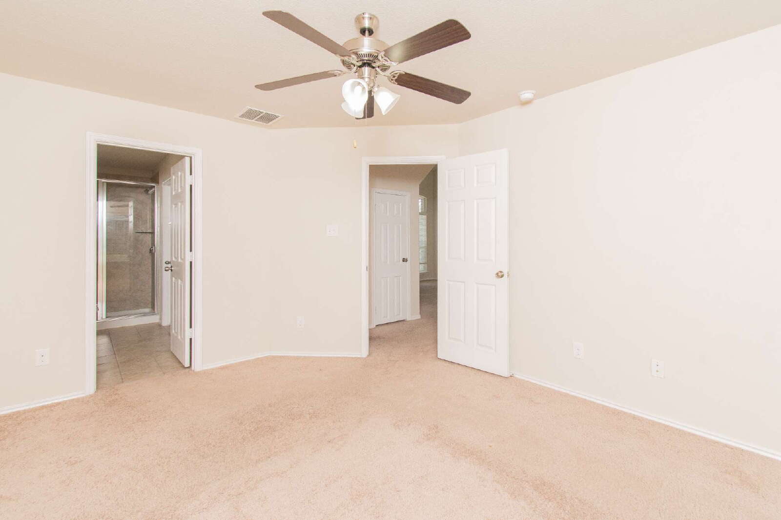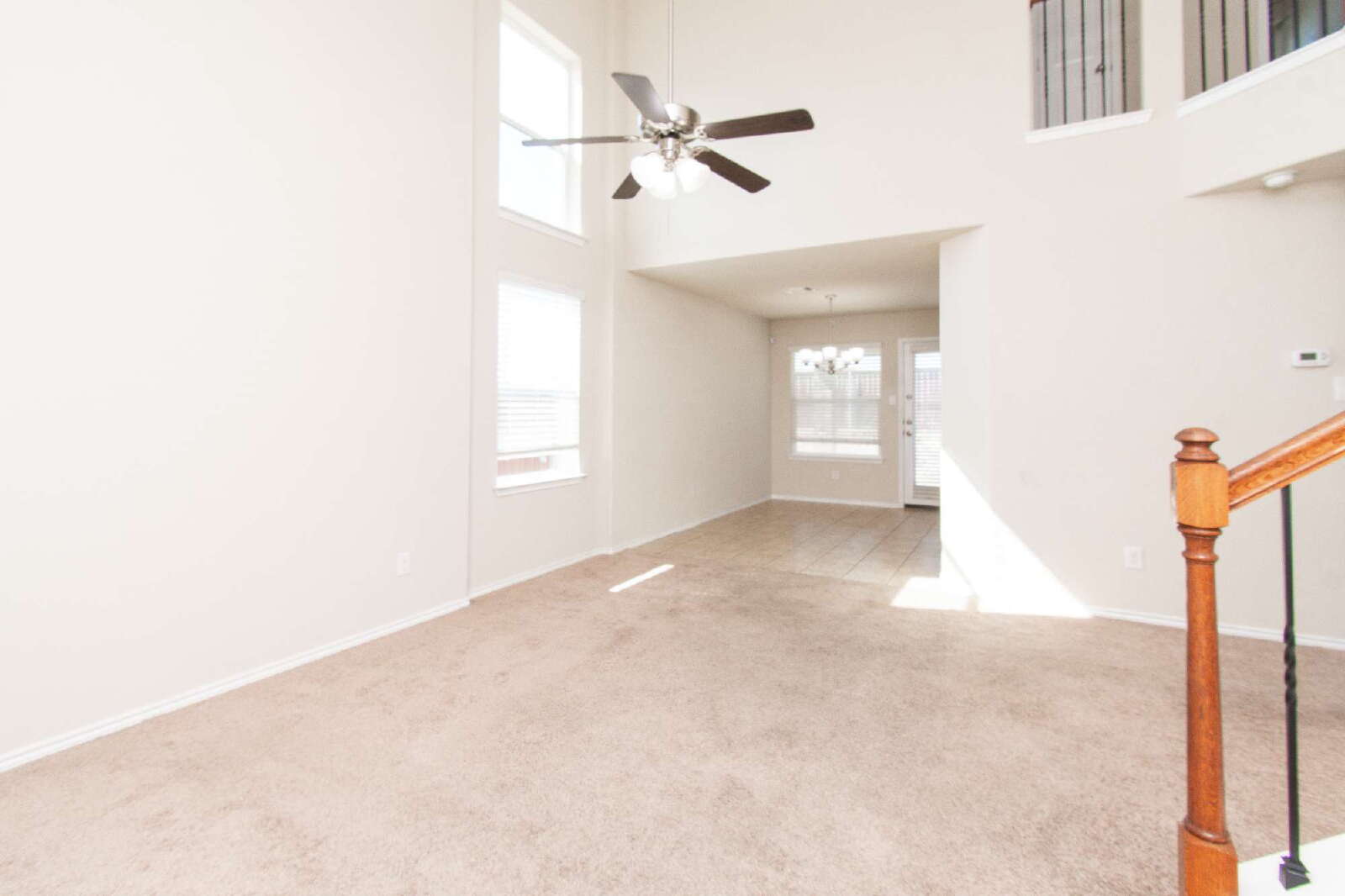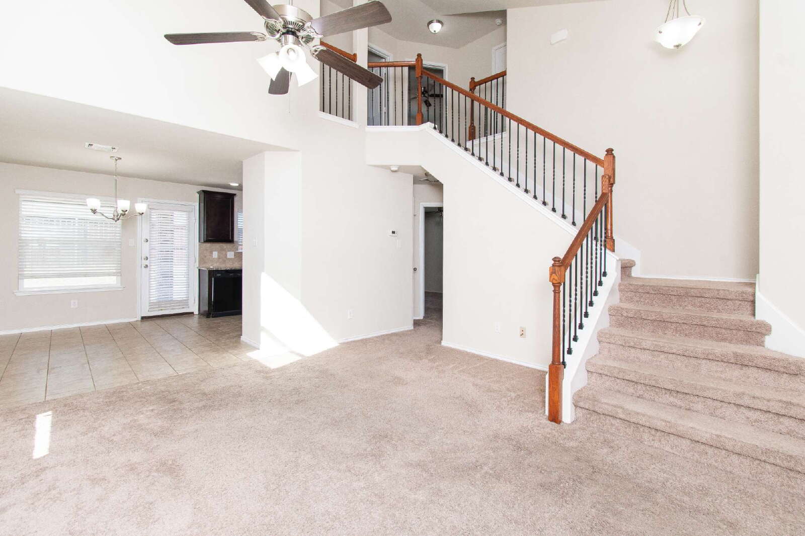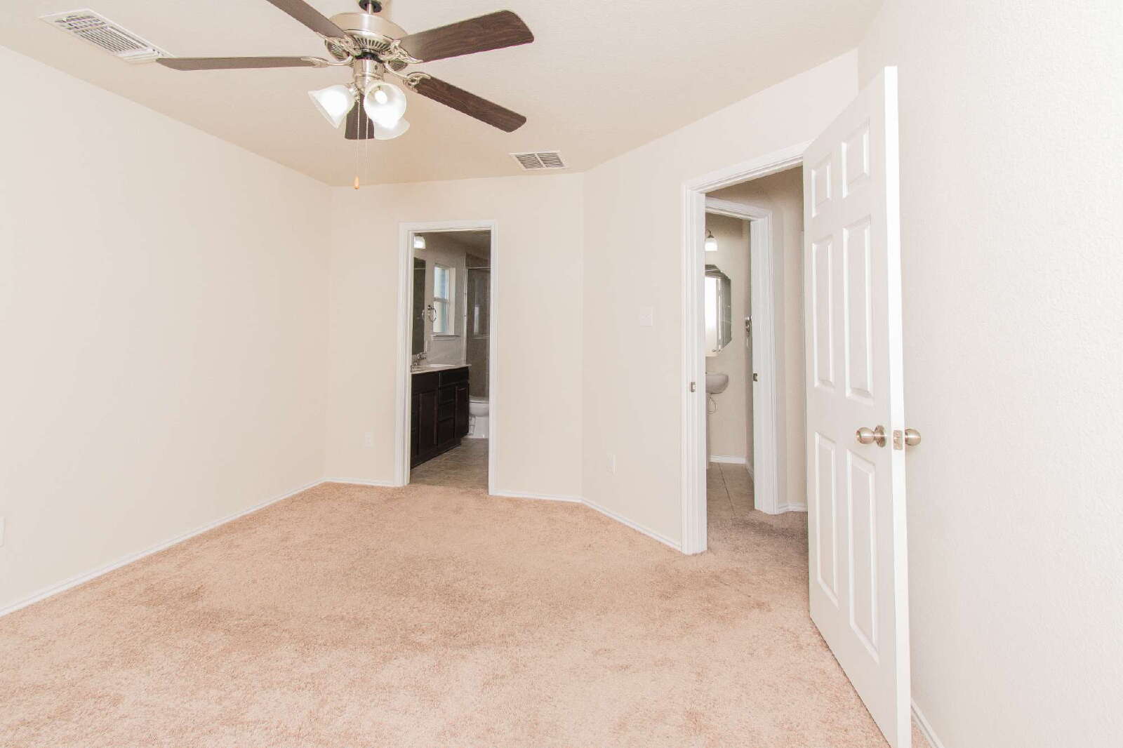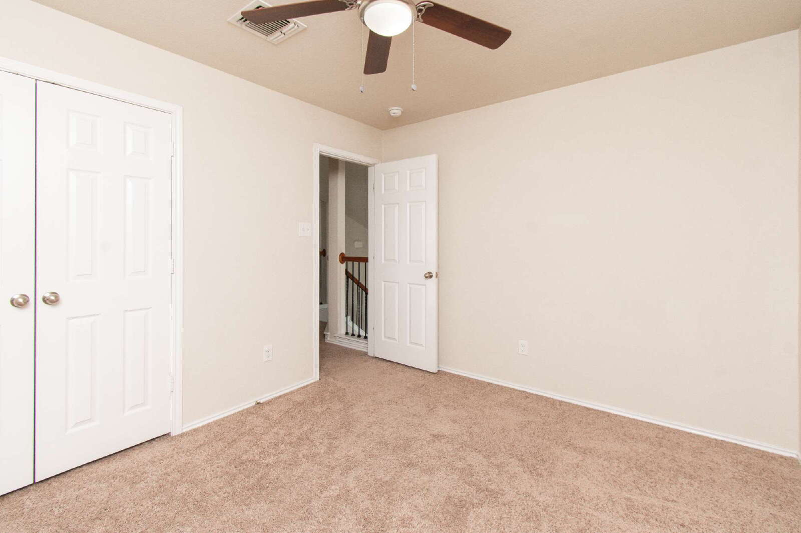 This stunning two-story home features a modern kitchen with custom cabinets, granite countertops, recessed lighting, a pantry, and essential appliances. A convenient laundry room with washer/dryer hookups adds functionality. The rooms are decent in size, offering comfort and flexibility for your needs. The primary bedroom includes a shower-only setup and a double vanity for added convenience. Enjoy the privately fenced backyard, perfect for outdoor gatherings, and an attached garage in the front for easy access and parking.