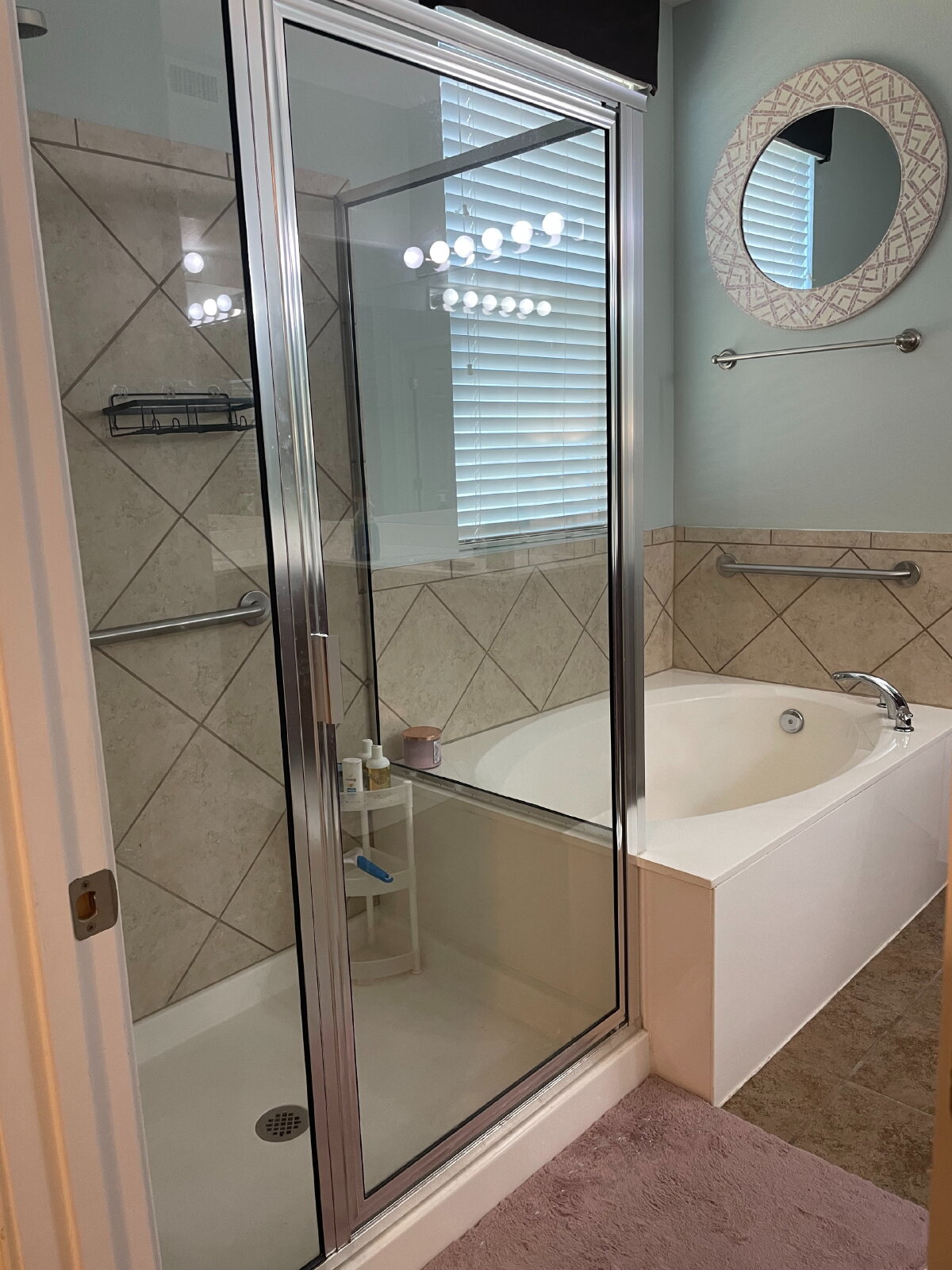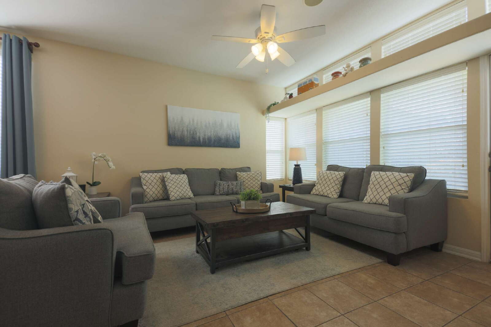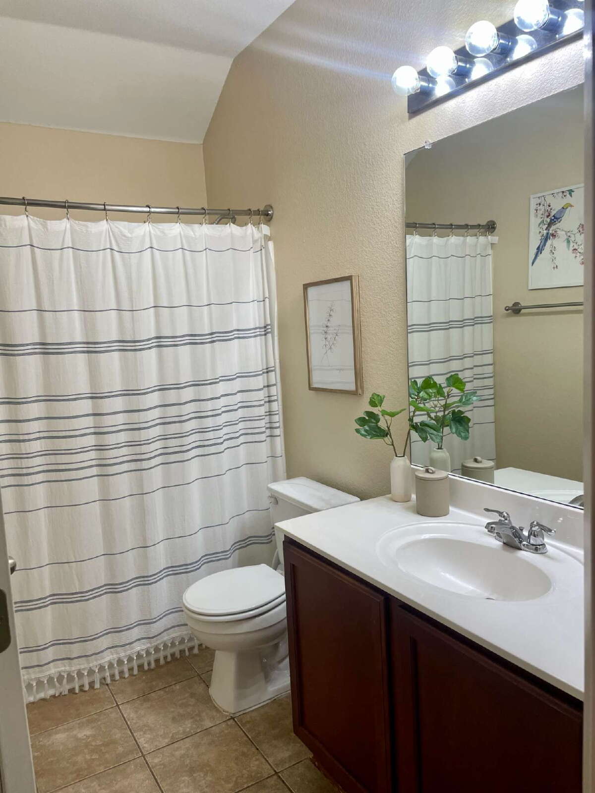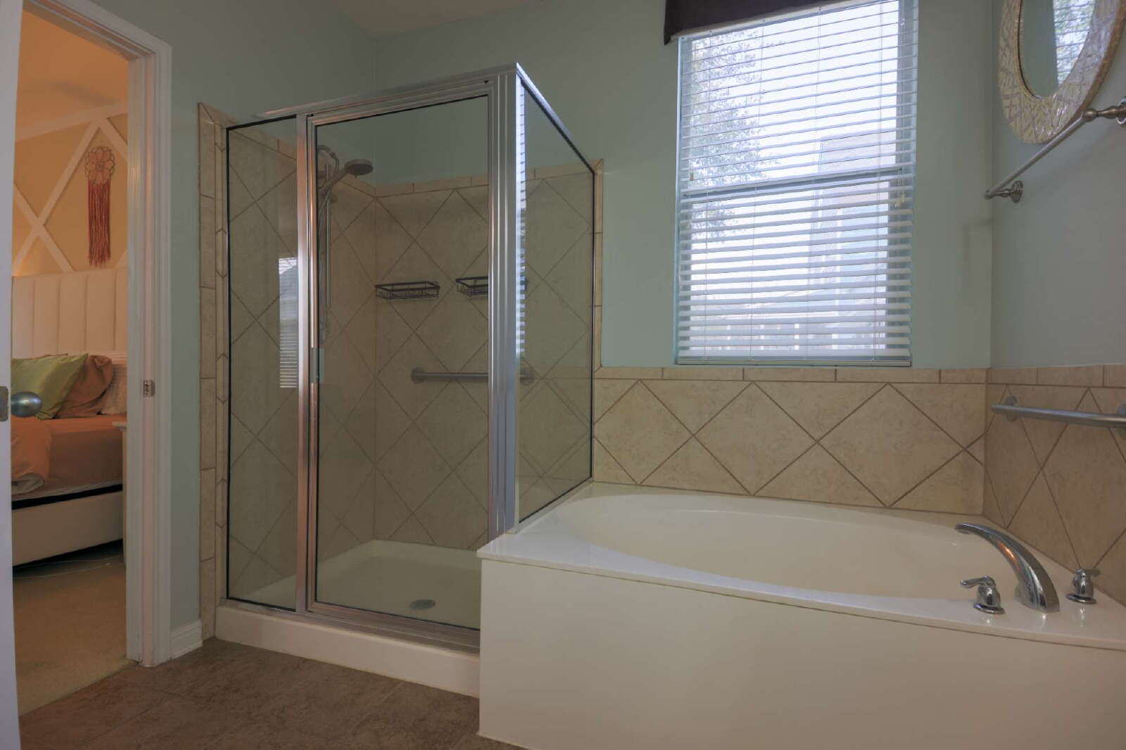 The rooms are decent in size, providing flexible living space throughout the home. A washer and dryer are included for added convenience. The primary bedroom includes a double vanity, a separate shower, and a relaxing garden tub. Outside, the home offers a privately fenced backyard and an attached garage, completing this well-rounded property.