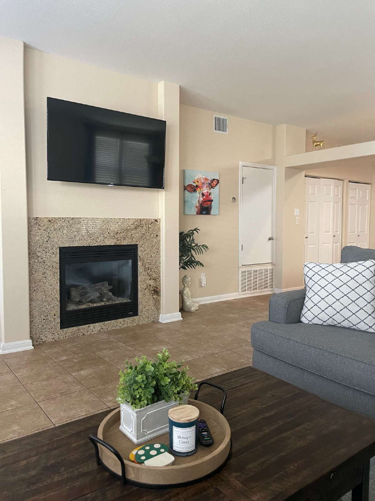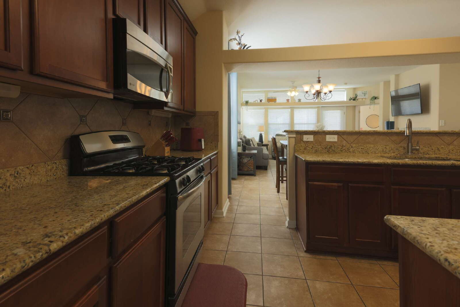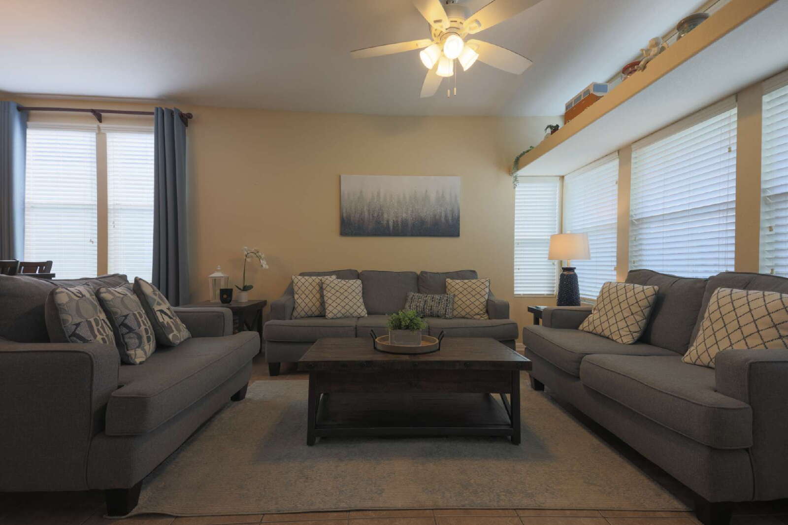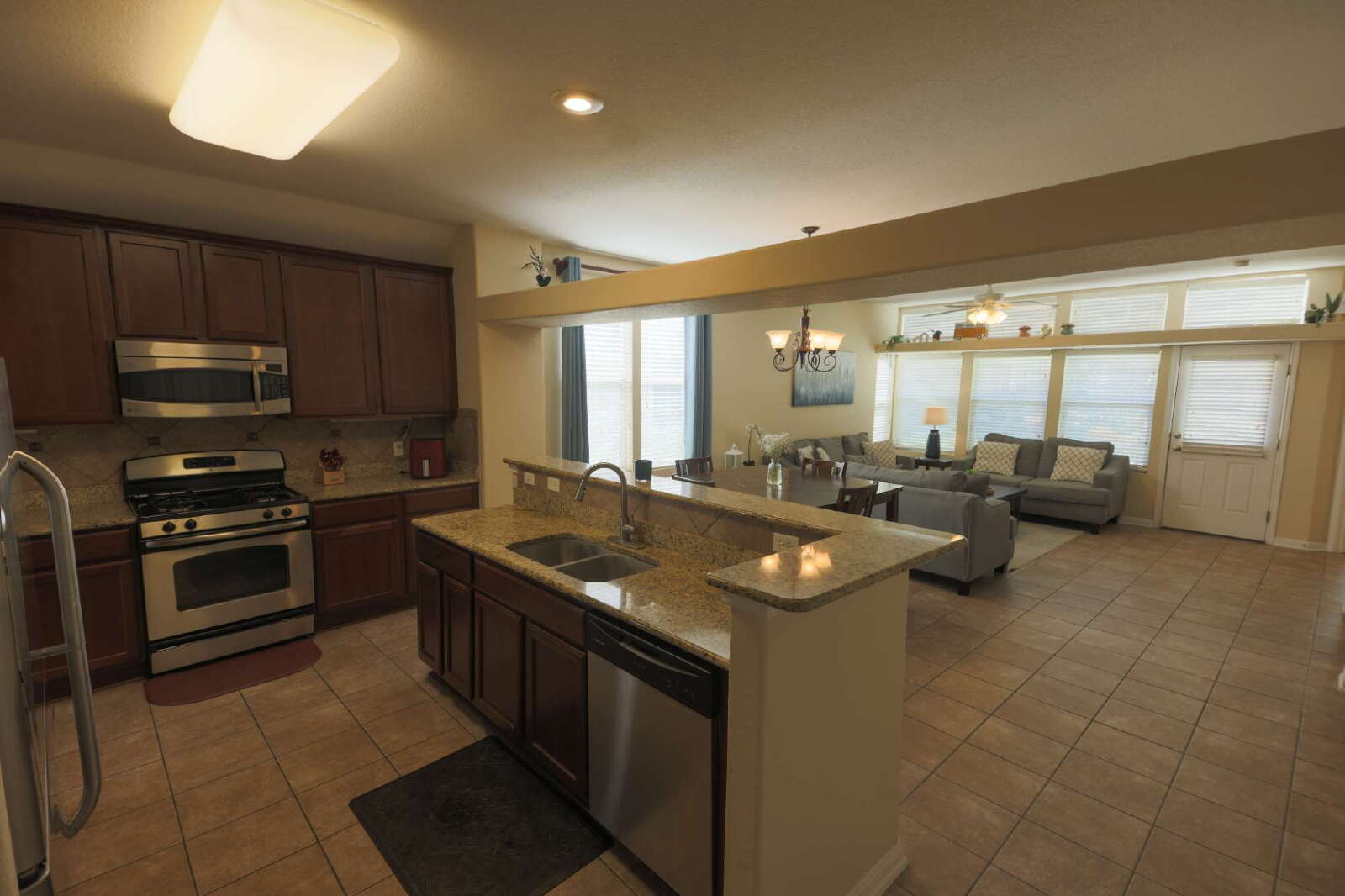 This attractive home features an open floor plan with a fireplace in the living room, creating a comfortable and inviting main living area. The kitchen is well-appointed with granite countertops, a center island, a pantry, and stainless steel appliances, offering both style and functionality.